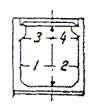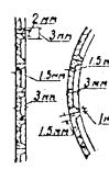 где r - цена деления уровня; n - число делений уровня, характеризующих наклон инструмента; n считается положительным, если уровень во время измерений отклонялся влево и отрицательным - вправо. z - зенитное расстояние измеряемого направления. 1.24. Перед наблюдениями теодолит должен быть исследован по программе, предусмотренной Инструкцией ГУГК о построении государственной геодезической сети. Уход за инструментами и их поверки осуществляются по правилам, принятым для государственных триангуляций. 1.25. В триангуляциях, создаваемых для строительства тоннелей, с целью устранения поправок за редукцию и ошибок визирования за счет фаз, в качестве объектов визирования используются специальные марки или штанги, устанавливаемые непосредственно над внешними центрами знаков. Штанги раскрашиваются шашками в белый и красный цвета. После установки штанг, производимой по отвесу, они закрепляются проволочными растяжками. 1.26. В тоннельных триангуляциях измерение горизонтальных углов производится способом измерения углов во всех комбинациях и способом круговых приемов. В табл. 1-4 приводятся произведения (п × m) числа направлений n на число приемов m при измерении углов во всех комбинациях и количество приемов при измерении углов круговыми приемами. 1.27. Угловые измерения производятся по правилам, принятым для городских и государственных триангуляций. В целях исключения действия рена обязательно использование при наблюдениях всего интервала счетной шкалы или барабана микроскоп-микрометра. Таблица 1-4