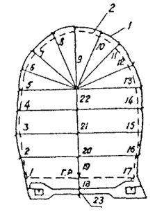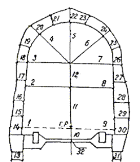31.15. Графические поперечные сечения строительных и деривационных тоннелей составляются: