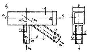 где gи - коэффициент, принимаемый согласно СНиП II-23-81*; b - коэффициент, принимаемый свыше 1,0 [11]; An - площадь сечения “нетто”; Ru и Ry - расчетные сопротивления, принимаемые согласно СНиП II-23-81*; А - площадь сечения „брутто". Условие равнопрочности по формулам (13) и (14) для центрально-растянутых элементов получит вид