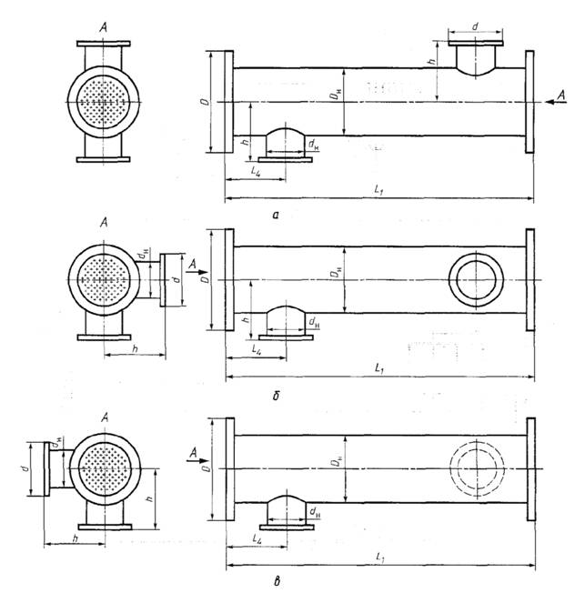 а - типовое (Т); б - правое (Пр); в - левое (Л) Рисунок 9 - Варианты исполнения блоков-секций по расположению патрубков