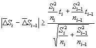 ni - число элементов выборки значений приращения осадки за i-ю ступень нагружения штампа; ni-1 - число элементов выборки значений приращения осадки за предыдущие сравниваемые ступени нагружения штампа, предшествующие i-й;