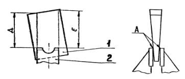 - измерительные губки зубомеров должны быть оснащены твердым сплавом. На зубомере должны быть нанесены: - товарный знак предприятия-изготовителя; - диапазон модулей измеряемых колес; - порядковый номер зубомера; - год выпуска или его условное обозначение. На футляре должны быть нанесены: - товарный знак предприятия-изготовителя; - наименование и условное обозначение зубодера. Упаковка зубомера должна соответствовать требованиям ГОСТ 13762-86 Комплектность зубомера должна соответствовать паспорту 23900.00П 4.2. Проверку диапазона показаний отсчетного устройства производят путем перемещения измерительного наконечника. Диапазон показаний отсчетного устройства должен быть не менее 10 мм. 4.3. Проверку отклонения от параллельности измерительных кромок А производят с помощью клина (Приложение 1) следующим образом. Снимают отсчетное устройство, зубомер устанавливают на стол губками вверх. Между губками вставляют клин меньшей толщиной вниз (маркировка сверху) на глубину (10-12) мм симметрично относительно губок. Губки сводят до соприкосновения с клином и стопорят. Клин поднимают на (2-3) мм и отпускают плавно, чтобы под действием собственного веса он опускался до заклинивания. При наличии отклонения от параллельности измерительных кромок клин наклонится (Рис. 1).