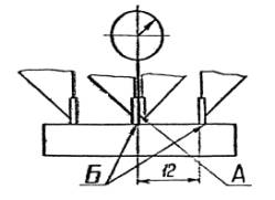 где dрол. - диаметр ролика. с - размер блока концевых мер, равный расстоянию между губками. h - размер блока концевых мер от плоскостей Б измерительных губок до измерительного наконечника. Рекомендуемые размеры dрол. и с приведены в табл. 2 Таблица 2