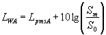 где Sws - площадь поверхности, имитирующая рабочее место по ГОСТ 31336 (подраздел 5.2); S0 = 1 м2 |