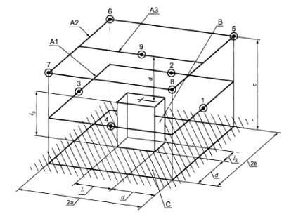 Рисунок С.1 -Точки измерений (согласно рисунку В.2 ГОСТ 31275)