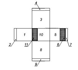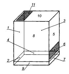 b) измерительная поверхность 1 - передняя панель; 2 - передняя несущая рама; 3 - правая дверь; 4 - правая несущая рама: 5 - задняя панель; 6 - заднее вентиляционное отверстие; 7 - задняя несущая рама: 8 - левая дверь; 9 - левая несущая рама; 10 - верхняя панель; 11 - верхнее вентиляционное отверстие Рисунок 1 - Метод сканирования Текст исключен, так как вместе с рисунком 1 вводит в заблуждение: измерительная поверхность не может быть частью конструкции |