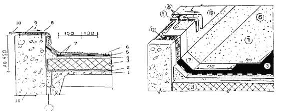 дополнительного кровельного ковра; 10 - наклонный бортик; 11 - оцинкованная