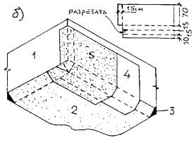 экструдированного пенополистирола; 4 - предохранительный (фильтрующий) слой; 5
