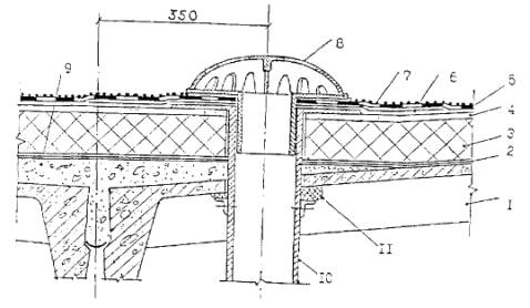 ковра; 10 - воронка внутреннего водостока; 11 - оцинкованная кровельная сталь;