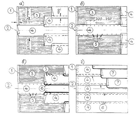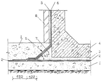 настилов на длину 3.1. Подготовка основания под изоляционные слои3.1.1. Все поверхности оснований из железобетона, бетона и штукатурка из цементно-песчаного раствора должны быть огрунтованы составом из битума БН 90/10 и керосина (праймером), приготовленного в соотношении (по весу) 1:3. Расход грунтовки составляет 0,3-0,5 кг/м2. Конструктивные решения гидроизоляции