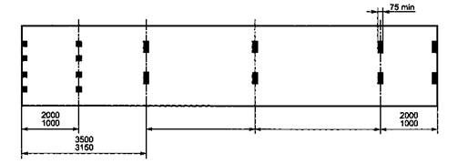 Б.2.3 Расстояние между торцевым поперечным элементом и ближайшей промежуточной парой опорных (контактных) площадок должно быть, мм: