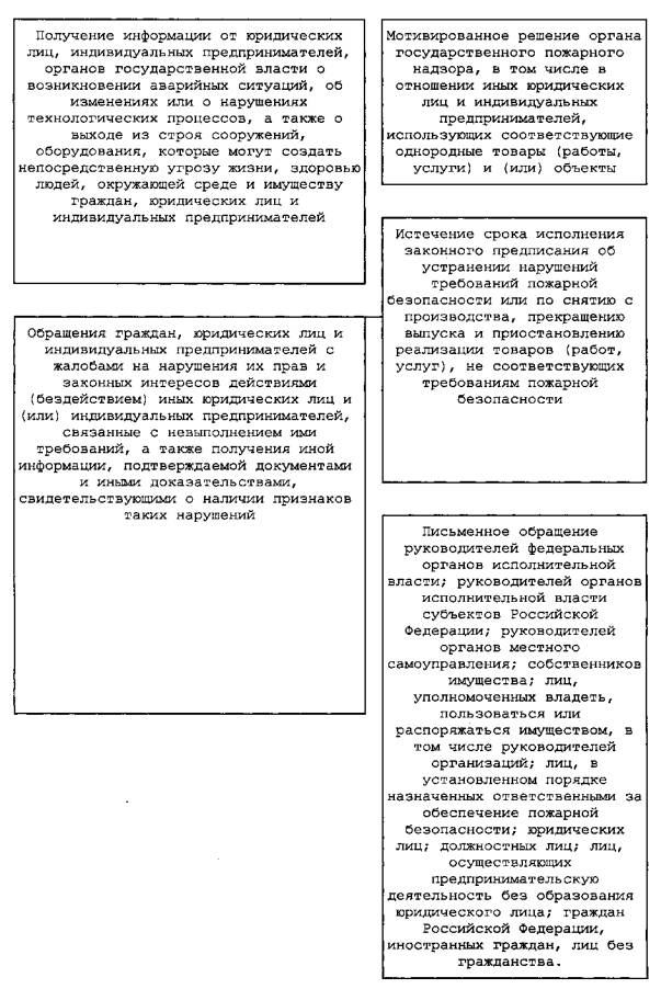 I. Общие положения1. Настоящий Административный регламент по исполнению государственной функции определяет последовательность и сроки действий (административные процедуры) по осуществлению государственной функции по надзору за выполнением федеральными органами исполнительной власти, органами исполнительной власти субъектов Российской Федерации, органами местного самоуправления, организациями, а также должностными лицами и гражданами (далее - организации и граждане) установленных требований пожарной безопасности (далее - государственный пожарный надзор или ГПН). Приказом МЧС РФ от 14 ноября 2008 г. N 688 в пункт 2 настоящего Регламента внесены изменения 2. Исполнение государственной функции по надзору в установленной сфере деятельности осуществляется в соответствии с: Конституцией Российской Федерации (Российская газета, 25.12.1993 г., N 237); Кодексом Российской Федерации об административных правонарушениях (Собрание законодательства Российской Федерации, 2002, N 1 (ч. I), ст. 1; N 18, ст. 1721; N 30, ст. 3029; N 44, ст. 4295, 4298; 2003, N 1, ст. 2; N 27 (ч. I), ст. 2700; N 27 (ч. II), ст. 2708, 2717; N 46 (ч. I), ст. 4434, 4440; N 50, ст. 4847, 4855; N 52 (ч. I), ст. 5037; 2004, N 19 (ч. I), ст. 1838; N 30, ст. 3095; N 31, ст. 3229; N 34, ст. 3529, 3533; N 44, ст. 4266; 2005, N 1 (ч. I), ст. 9, 13, 37, 40, 45; N 10, ст. 762, 763; N 13, ст. 1077, 1079; N 17, ст. 1484; N 19, ст. 1752; N 25, ст. 2431; N 27, ст. 2719, 2721; N 30 (ч. I), ст. 3104; N 30 (ч. II), ст. 3124, 3131; N 40, ст. 3986; N 50, ст. 5247; N 52 (ч. I), ст. 5574, 5596; 2006, N 1, ст. 4, 10; N 2, ст. 172, 175; N 6, ст. 636; N 10, ст. 1067; N 12, ст. 1234; N 17 (ч. I), ст. 1776; N 18, ст. 1907; N 19, ст. 2066; N 23, ст. 2380, 2385; N 28, ст. 2975; N 30, ст. 3287; N 31 (ч. I), ст. 3420, 3432, 3433, 3438, 3452; N 43, ст. 4412; N 45, ст. 4633, 4634, 4641; N 50, ст. 5279, 5281; N 52 (ч. I), ст. 5498); Арбитражным процессуальным кодексом Российской Федерации (Собрание законодательства Российской Федерации, 2002, N 30, ст. 3012; 2004, N 31, ст. 3216, ст. 3282; N 45, ст. 4377; 2005, N 14, ст. 1210; N 48, ст. 5123; 2006, N 1, ст. 8; N 15, ст. 1643); Гражданским кодексом Российской Федерации (Собрание законодательства Российской Федерации, 1994, N 32, ст. 3301; 1996, N 9, ст. 773; N 34, ст. 4026; 1999 N 28, ст. 3471; 2001, N 17, ст. 1644; N 21, ст. 2063; 2002, N 12, ст. 1093; N 48, ст. 4737, ст. 4746; 2003, N 2, ст. 167; N 52 (ч. I), ст. 5034; 2004, N 27, ст. 2711; N 31, ст. 3233; 2005, N 1 (ч. I), ст. 18, ст. 39, ст. 43; N 27, ст. 2722, N 30 (ч. II), ст. 3120; 2006, N 2, ст. 171; N 3, ст. 282; N 23, ст. 2380; N 27, ст. 2881; N 31 (ч. I), ст. 3437; N 45, ст. 4627; N 50, ст. 5279; N 52 (ч. I), ст. 5497, ст. 5498; 2007, N 1 (ч. I), ст. 21; N 7, ст. 834); Градостроительным кодексом Российской Федерации (Собрание законодательства Российской Федерации, 2005, N 1 (ч. I), ст. 16; N 30 (ч. II), ст. 3128; 2006, N 1, ст. 10, ст. 21; N 23, ст. 2380; N 31 (ч. I), ст. 3442; N 50, ст. 5279; N 52 (ч. I), ст. 5498; 2007, N 1 (ч. I), ст. 21; N 21, ст. 2455); Федеральным законом от 8 августа 2001 г. N 134-ФЗ "О защите прав юридических лиц и индивидуальных предпринимателей при проведении государственного контроля (надзора)" (Собрание законодательства Российской Федерации, 2001, N 33 (ч. I), ст. 3436; 2002, N 44, ст. 4297; 2003, N 2, ст. 159; N 40, ст. 3820; 2004, N 35, ст. 3607; 2005, N 19, ст. 1752; N 27, ст. 2719; 2006, N 1, ст. 17); Федеральным законом от 27 декабря 2002 г. N 184-ФЗ "О техническом регулировании" (Собрание законодательства Российской Федерации, 2002, N 52 (ч. I), ст. 5140; 2005, N 19, ст. 1752; 2007, N 19, ст. 2293); Федеральным законом от 21 декабря 1994 г. N 69-ФЗ "О пожарной безопасности" (Собрание законодательства Российской Федерации, 1994, N 35, ст. 3649; 1995, N 35, ст. 3503; 1996, N 17, ст. 1911; 1998, N 4, ст. 430; 2000, N 46, ст. 4537; 2001, N 1 (ч. I), ст. 2; N 33 (ч. I), ст. 3413; 2002, N 1 (ч. I), ст. 2; N 30, ст. 3033; 2003, N 2, ст. 167; 2004, N 19 (ч. I), ст. 1839; N 27, ст. 2711; N 35, ст. 3607; 2005, ст. 14, ст. 1212; N 19, ст. 1752; 2006, N 6, ст. 636; N 44, ст. 4537; N 45, ст. 4640; N 50, ст. 5279; N 52 (ч. I), ст. 5498); Федеральным законом от 30 декабря 2006 г. N 271-ФЗ "О розничных рынках и