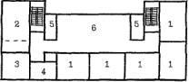 4. ВАРИАНТЫ ПЕРЕПЛАНИРОВКИ И ИСПОЛЬЗОВАНИЯ ЗДАНИЙ ШКОЛ ТИПОВ МЮ И 65-426.1, ДОШКОЛЬНЫХ УЧРЕЖДЕНИЙ ТИПОВ VI-13 И 2МГ-04-3, ОПРЕДЕЛЕНИЕ СОСТАВА ПОМЕЩЕНИЙ ДОПОЛНИТЕЛЬНЫХ ОБЪЕМОВ.4.1. В целях определения характера перепланировки существующего здания и выявления ориентировочного состава помещений и расчетных площадей помещений, выносимых в дополнительные объемы, целесообразно разрабатывать типологические схемы перепланировки и использования помещений существующего объема. Вне зависимости от последующих объемно-планировочных решений, надстраивания или пристраивания дополнительных объемов, существующие объемы предполагают определенную расчетную площадь размещаемых в них функциональных групп помещений. Состав существующих и дополнительных объемов может варьироваться. Типологические схемы следует разрабатывать на определенный вариант перепланировки, чтобы до разработки проекта и архитектурно-планировочных решений сформировать типы дополнительных блоков, определить их расчетные и общие площади. 4.2. В качестве примера в данных рекомендациях предлагается один из возможных вариантов перепланировки зданий образовательных учреждений в соответствии с МОДЕЛЬЮ 1 (рис. 4 - 9). 4.3. Для реконструкции зданий школ типов МЮ и 65-426.1 под полные средние школы на 33 класса с наполняемостью классов в 30 учащихся /990 мест/ требуется демонтаж части перегородок при организации учебных помещений площадью 70 м2 (рис. 5 и 7). Типологические схемы позволяют определить назначение образующихся при этом незапланированных помещений нестандартной площади. 4.4. Предлагаемые варианты типологических схем предусматривают размещение в существующих объемах зданий школ учебных групп помещений преимущественно основной и старшей школ. Начальная школа в данных вариантах выносится в дополнительные объемы. 4.5. При осуществлении надстройки учебного блока в здании школы типа 65-426.1 до 4-х этажей начальная школа может размещаться в основном надстроенном здании, однако, для простоты расчетов в типологической схеме помещения начальной школы методически обосновано отнести к дополнительным помещениям. Это не исключает возможности разработки варианта типологических схем с непосредственным размещением начальной школы в существующем здании, поскольку в любом случае эти помещения располагаются в пределах трех существующих этажей. 4.6. Выбор той или иной схемы зависит от принятой типологической методики. Вариант схемы с вынесением начальной школы в дополнительные объемы ориентирован на те случаи, когда надстраивание учебного блока реконструируемого здания школы типа 65-426.1 исключено. 4.7. В зданиях школ типа МЮ буфеты, актовые и спортивные залы не соответствуют требованиям МГСН к данным помещениям в школах на 33 класса. Предлагается проектирование спортивных, зрительных залов и столовых в дополнительных объемах (с отдельным входом) и изменение назначения аналогичных существующих помещений. 4.8. В зданиях школ типа 65-426.1 гимнастические и актовые залы по габаритам и площадям несколько отличаются от требуемых сегодня для школ на 33 класса, но в целях минимизации площадей дополнительных объемов с некоторыми дополнениями могут использоваться по своему назначению. Предлагаются решения с различными комбинациями залов: - на площади гимнастического - зала располагается спортивный