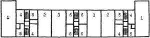 Рис. 17 Пример архитектурно-планировочного решения реконструкции здания школы типа МЮ для школы на 33 класса 990 учащихся. План 2 этажа А