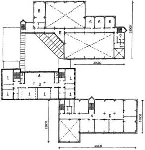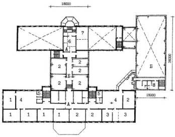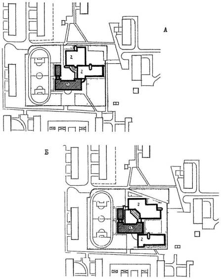 - существующее здание; Б - пристраиваемые объемы