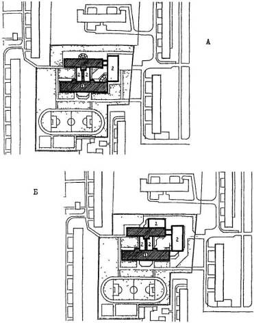 - существующее здание; Б - пристраиваемые объемы.
