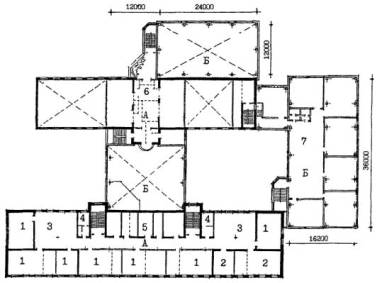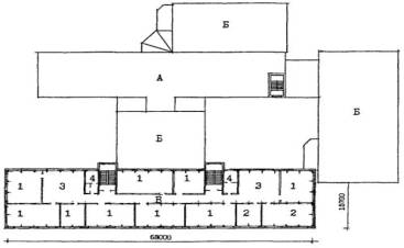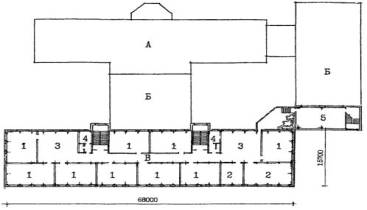 А - существующее здание; Б - пристраиваемые