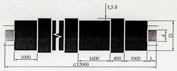 Примечания: 1. Проводники системы ОДК под металлической заглушкой изоляции закольцованы. 2. Размер неизолированной части трубы «L»: 150 мм для диаметров до 219 мм включительно; 210 мм - для диаметров 273-530 мм. 3. Пример условного обозначения: Труба ст. 57×3,5-1-ППУ-ПЭ-ЗИМ650. Теплоизолированная труба с заглушкой изоляции металлической и кабелем вывода
