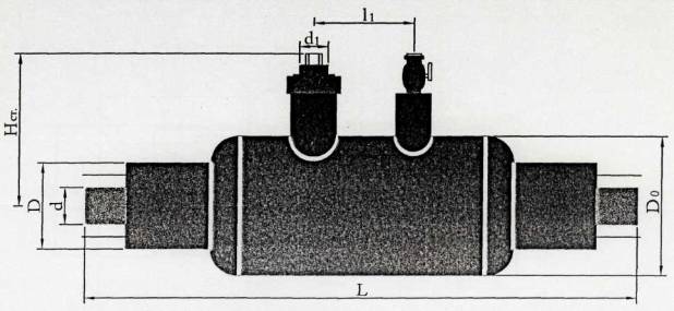 Примечания: 1. По отдельным заказам изготавливаются отводы с другими углами. 2. Толщина стенки отвода и патрубков уточняется при заказе. 3. Пример условного обозначения: Отвод ст. 57×3,5-90°-ППУ-Оц. 4. По заказу изготавливаются отводы с укороченными или удлиненными плечами. ОТВОД ТЕПЛОИЗОЛИРОВАННЫЙ С МЕТАЛЛИЧЕСКОЙ ЗАГЛУШКОЙ ИЗОЛЯЦИИ