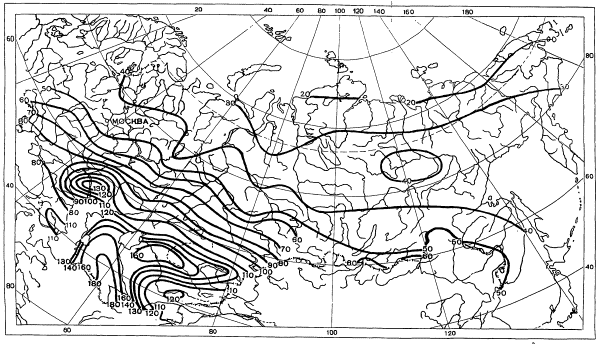 Распределение годового испарения, полученного по рис. П.2.2., по месяцам, находится по таблице П.2.8. в зависимости от зоны, в которой расположен водоем (рис. П.2.2.).