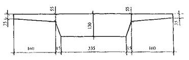 Рис. 9. Схема поперечного сечения правого пролетного строения путепровода при пересечении МКАД с ул. Соломеи Нерис На рис. 10 приведены размеры поперечного сечения средней балки коробчатого пролетного строения третьего построенного путепровода.