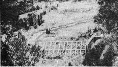 Рис. 15. Сквозное сооружение на р. Акжар, занесенное селевыми отложениями Для защиты западной части города на р. Большая Алматинка построена 40-метровая монолитная железобетонная ячеистая плотина (рис. 16). Длина плотины по гребню 422 м, а ширина по основанию - более 200 м. В тело плотины уложено 85 тыс. м3 железобетона и отсыпано валунно-галечного грунта около 1 млн. м3. Вместимость селехранилища составляет 8,2 млн. м3. Сметная стоимость строительства - 16 млн. р. [13].