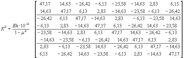 Аналогично записываются матрицы жесткости остальных элементов. Матрицы жесткости первого конечного элемента в общей системе осей координат запишем в виде