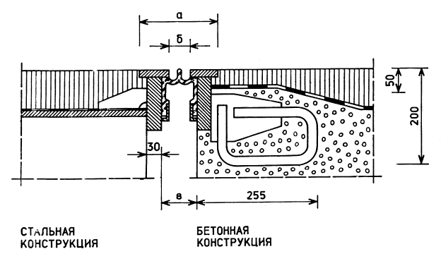 ДЕФОРМАЦИОННЫЕ ШВЫ Москва СОДЕРЖАНИЕ 1. Описание и применениеДеформационные швы используют для соединения деформационных зазоров в мостовых конструкциях, в высотном строительстве и в многих других сооружениях. Деформационные швы представляют собой очень важный элемент объекта, причем выбор типа дилатационной конструкции зависит от величины статических и термогидрометрических деформаций, от величины непосредственной нагрузки транспорта и требуемого комфорта проезда в течение эксплуатации и от условий содержания. Условия действия швов обуславливают и комплексность решений выработки деформационных швов - от простых, с элементами, уложенными в зазор деформационного шва, до скользящих, консольных и ножницеобразных конструкций с возможностью движения в плоскости или в пространстве. Деформационные швы разделяют на: водонепроницаемые, и водопроницаемые которые пропускают воду с проезжей части дороги в водосборные устройства (вставленные в конструкцию моста или установленные в зазор для дилатации из-под деформационного шва). Свободное перемещение конструкции на месте деформационного шва должно быть обеспеченным при всех условиях эксплуатации объекта. Для этого перемещения, в плоскости, по окружности или в пространстве, нужно свободное пространство, которое надо обеспечить в конструкции объекта, и сохранить содержанием. Пространство для свободного перемещения является условием долговечности деформационного шва и объекта. Содержание деформационных швов обусловлено их конструкцией (более простые конструкции нуждаются в более простом содержании). Деформационные швы могут быть, в случае надобности, предусмотрены для установки под косым углом в отношении к направлению движения. 2. Проектирование и выработкаДеформационные швы проектируют и производят в сборно-разборных составах для более легкого транспортирования, установки и содержания. Стремятся к применению наиболее возможного числа стандартных элементов, потому что таким образом снижается цена и облегчается замена элементов в случае необходимости. Изготовление деформационных швов начинают после одобрения проекта со стороны заказчика. Все элементы деформационных швов вырабатывают из высококачественных видов стали, обеспечивающих достаточную жесткость и надежность в течении эксплуатации и при самых трудных условиях работы. Для проектирования деформационных швов, кроме угла между осью моста и осью шва в плане, требуются и следующие данные: А) в продольном разрезе шва: - широта и уклон проезжей части, - форма и размеры бортового камня, - форма и ширина пешеходной дорожки, - расстановка балок (в сборочных объектах), - расположение кабелей для предварительного напряжения конструкции, - арматура конструкции в зоне анкеровки деформационного шва (продольная и поперечная). Б) в поперечном разрезе шва (при температуре во время сборки): - величина дилатационных отверстий, - величина пространства, в которое укладывают дилатацию, - величина перемещения по отношению к положению конструкций при температуре во время сборки. 3. Установка-сборкаОт правильной и хорошей установки деформационного шва зависит не только его работа, но и долговечность. Поэтому бригада для укладки деформационного шва должна быть опытной и обладать хорошим оборудованием для высококачествен
