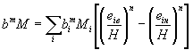 Рис. 2.2. Схема к определению расчетной ширины массивной опоры (справа выделен второй элемент). Вид по направлению скорости потока (по стрелке на рис. 2.5). eiн, eiв - расстояния от линии дна низа (индекс «н») и верха (индекс «в») i-того элемента; bi - ширина i-того элемента массивной опоры.