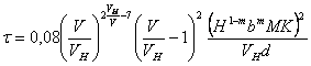 где: унач = hиач/h - относительная глубина размыва в начале ступени гидрографа паводка; укон = hкон/h - относительная глубина размыва в период окончания гидрографа паводка; hнач, hкон - глубина размыва у опоры в начале и конце расчетной ступени гидрографа паводка, м; h - наибольшая глубина местного размыва на период стабилизации деформаций русла, в предположении бесконечной продолжительности ступени гидрографа паводка, определяется по формуле (2.3), м; Δt - продолжительность ступени гидрографа паводка, час; τ - масштаб времени нестационарного процесса размыва опоры моста на ступени гидрографа паводка, час; F(y) - безразмерная интегральная функция. 3.5. Масштаб времени нестационарного процесса размыва опоры моста при установившемся движении потока определяется по формуле, час: