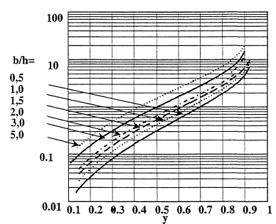 Рис. П. 4. График для определения функции F(y) в зависимости от относительной ширины опоры b/h по формуле (3.3)