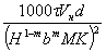 = 1,8/1,29 = 1,39 > 1,0 тогда m = 0,5. h/(H1-m·bm·MK)
