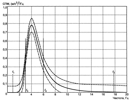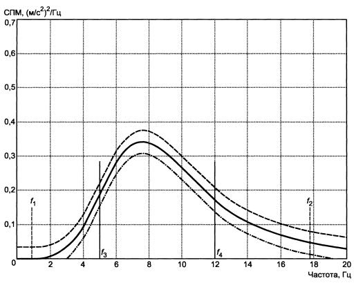 350 % истинного с.к.з. ускорения. Здесь под истинным с.к.з. понимают значение 5.5.3 Спектральная плотность мощности и среднеквадратичное значение Спектральная плотность мощности ускорения, измеренная на платформе вибростенда, может быть признана соответствующей заданной СПМ a) во всем диапазоне частот f1 £ f£ f2 выполнено соотношение