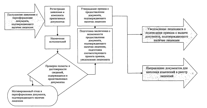 "Рис. "Блок-схема исполнения административной процедуры "Переоформление документов, подтверждающих наличие лицензии, продление действия лицензии на осуществление деятельности по проведению экспертизы промышленной безопасности" Приложение N 8к