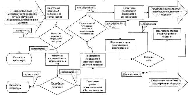 "Рис. "Блок-схема исполнения административной процедуры "Приостановление действия и аннулирование лицензии на осуществление деятельности по проведению экспертизы промышленной безопасности" Приложение N 10к
