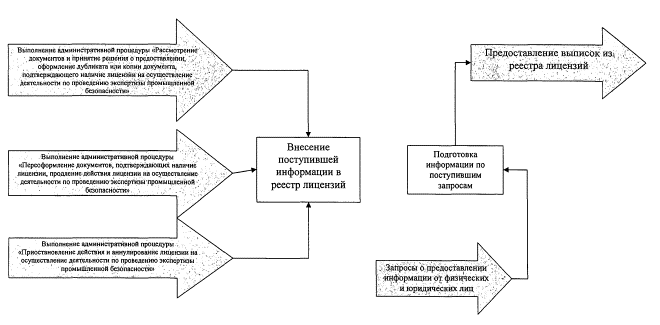 Рис. "Блок-схема административной процедуры "Ведение реестра лицензий на осуществление деятельности по проведению экспертизы промышленной безопасности и предоставление заинтересованным лицам сведений из реестра и иной информации о лицензировании"