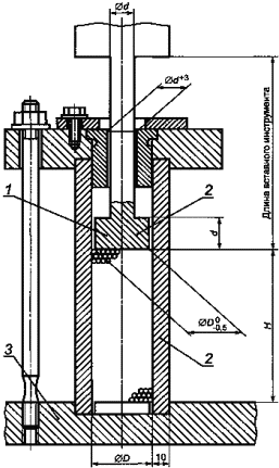 не менее Примечание - Если испытания продолжаются длительное время, целесообразно предусмотреть устройство охлаждения поглотителя энергии. Имитатор вставного инструмента и поглотитель энергии, выступающий в качестве нагрузочного устройства, показаны на рисунке 3. Их размеры следует выбирать в соответствии с таблицей 1. Таблица 1 - Параметры конструкции поглотителя энергии В миллиметрах