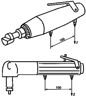 Дата введения - 2008-07-01 1. Область примененияНастоящий стандарт относится к стандартам безопасности типа С (испытательный код по вибрации) согласно классификации ГОСТ 12.1.012 и устанавливает лабораторный метод измерения вибрации на рукоятках ручных шлифовальных машин для обработки штампов с инструментом, вставленным в цанговый зажим (далее - ручные машины) в целях заявления и подтверждения вибрационной характеристики ручной машины1). Общие требования к методу испытаний ручных машин в целях заявления и подтверждения вибрационной характеристики приведены в ГОСТ 16519. Полученные в ходе испытаний результаты могут быть использованы для сравнения разных образцов или моделей ручной машины. Метод испытаний, установленный в настоящем стандарте, предписывает проведение измерений в искусственных модельных условиях. Тем не менее, результаты испытаний могут дать ориентировочное представление о том, какая вибрация будет наблюдаться на рабочем месте в условиях выполнения реального рабочего задания. Настоящий стандарт распространяется на ручные машины с пневматическим приводом. Примеры типичных образцов ручных машин данного вида приведены на рисунке 1. 1) При необходимости данный метод может быть использован в других целях, например при входном, периодическом или послеремонтном контроле продукции (см. ГОСТ 12.1.012, пункт 4.2). Рисунок 1 -Типичные образцы машин для обработки штампов (указаны направления измерения и места установки датчиков вибрации) 2. Нормативные ссылкиВ настоящем стандарте использованы нормативные ссылки на следующие межгосударственные стандарты: ГОСТ 12.1.012-2004 Система стандартов безопасности труда. Вибрационная безопасность. Общие требования ГОСТ 16519-2006 (ИСО 20643:2005) Вибрация. Определение параметров вибрационной характеристики ручных машин и машин с ручным управлением. Общие требования (ИСО 20643:2005 «Вибрация. Машины ручные и машины с ручным управлением. Принципы определения параметров виброактивности», MOD) ГОСТ 24346-80 Вибрация. Термины и определения ГОСТ 31192.2-2005 (ИСО 5349-2:2001) Вибрация. Измерение локальной вибрации и оценка ее воздействия на человека. Часть 2. Требования к проведению измерений на рабочих местах (ИСО 5349-2:2001 «Вибрация. Измерение локальной вибрации и оценка ее воздействия на человека. Часть 2. Практическое руководство по проведению измерений на рабочих местах», MOD) Примечание - При пользовании настоящим стандартом целесообразно проверить действие ссылочных стандартов на территории государства по соответствующему указателю стандартов, составленному по состоянию на 1 января текущего года, и по соответствующим информационным указателям, опубликованным в текущем году. Если ссылочный стандарт заменен (изменен), то при пользовании настоящим стандартом следует руководствоваться заменяющим (измененным) стандартом. Если ссылочный стандарт отменен без замены, то положение, в котором дана ссылка на него, применяется в части, не затрагивающей эту ссылку. 3. Термины и определенияВ настоящем стандарте применены термины по ГОСТ 12.1.012, ГОСТ 16519 и ГОСТ 24346. 4. Измеряемые величиныВ процессе испытаний измеряют: - среднеквадратичное значение корректированного виброускорения по ГОСТ 16519; - давление воздуха в системе питания; - скорость вращения шпинделя. 5.Средства измерений5.1. Общие положения Требования к средствам измерений - 