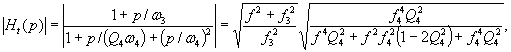Частоты f1 - f6 и коэффициенты добротности Q4 – Q6 являются параметрами передаточных функций, определяющих общий вид частотной коррекции (относительно виброускорения, рассматриваемого в качестве входной величины). Данные передаточные функции являются произведениями нескольких сомножителей, которые перечислены ниже.