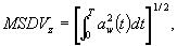 По возможности следует определять дозу укачивания, проводя измерения вибрации на всем периоде ее воздействия. Значение дозы укачивания MSDVz, м/с15, определяют как квадратный корень из интеграла от квадрата корректированного виброускорения, действующего в направлении оси z: