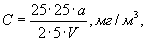 Концентрацию солей фтористоводородной кислоты в воздухе (по фтор-иону) вычисляют по формуле :