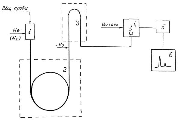 Принципиальная схема газохроматографической системы для определения оксида углерода (II):