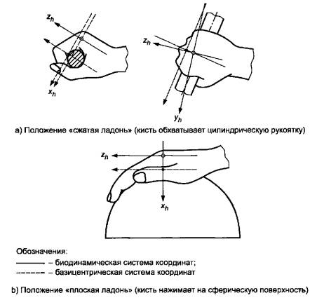 ahwi - результат i-го измерения; N - общее число измерений. 4 Описание семейства машин, охватываемых испытательным кодомВ испытательном коде должно быть точно определено, на какое семейство машин распространяется его действие. При описании конструкции машин в испытательном коде должны быть указаны: - специальные устройства и вставные инструменты всех видов, которые оказывают влияние на вибрационную активность машины; - правила выбора дополнительных деталей или узлов машины, которые могут оказать влияние на вибрационную активность машины и должны быть использованы при определении вибрационной характеристики машины. 5 Вибрационная характеристикаПоступательную вибрацию, воздействующую на руки оператора, определяют в базицентрической прямоугольной системе координат (х, у, z), как показано на рисунке 1. В испытательном коде должно быть указано направление осей применяемой системы координат. Вибрацию измеряют одновременно в трех ортогональных направлениях в каждой области обхвата машины рукой оператора, по возможности ближе к месту воздействия, - как правило, посередине длины области обхвата, когда рука оператора находится в положении, типичном для выполнения рабочей операции. Если установке датчика вибрации (далее - акселерометр) в указанном месте мешает положение пускового устройства машины, тогда акселерометр устанавливают как можно ближе к кисти руки между большим и указательным пальцами.