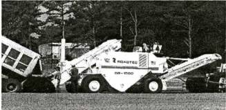 Рис. 3. Машина для перегрузки асфальтобетонной смеси типа SB-1500 фирмы ROADTEC Машина для перегрузки асфальтобетонной смеси типа LTV-1000 является упрощенным вариантом перегрузчика, у которого нет наполнительного бункера. В Европе первые собственные перегрузчики асфальтобетонной смеси появились в Германии, и сделаны они были на базе имеющихся гусеничных асфальтоукладчиков, которые не были оснащены перемешивающими устройствами и накопительными бункерами. Немецкая фирма Vogele выпускает гусеничный перегрузчик типа МТ-1000, как дополнительный к выпускаемым этой фирмой асфальтоукладчикам с 20 тонными бункерами. Перегрузка асфальтобетонной смеси перегрузчиком типа МТ-1000 фирма Vogele в бункер асфальтоукладчика представлена на рис.4.