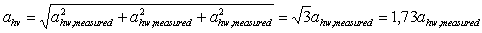 Поэтому для оценки полной вибрации следует использовать коэффициент 1,73 (приближенно 1,7). Таким образом, оценка полной вибрации будет получена умножением измеренного значения однокомпонентной вибрации на коэффициент 1,7. 2 Предварительные измерения для бетонолома показывают, что наибольшей является вибрация ahw,dominant в вертикальном направлении, в то время как вибрация по другим направлениям не превышает 30 % этого значения. В данном случае оценка полной вибрации будет получена из выражения