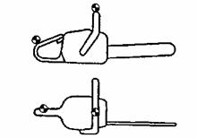 Датчики крепят в местах, показанных на рисунках, где оператор удерживает машину. Обычное положение - посередине рукоятки. Если это невозможно из-за положения пускового устройства, - то максимально близко к указанному месту. Для прямых машин с устройством управления датчики располагают так, чтобы измерять ускорение на поверхности машины параллельно оси вала двигателя. Датчик располагают максимально близко к поверхности машины |