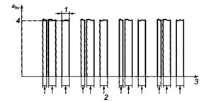 1 - инструмент 1; 2 - инструмент 2; 3 - рабочий цикл; 4 - время