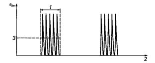 Пример - За смену трамбовку используют в течение 2,5 ч, никакой другой виброопасный инструмент не применяют. Фотография вибрационного воздействия аналогична той, что изображена на рисунке Е. 1. Среднеарифметическое по трем измерениям вибрации на рукоятках ручной машины дает значение полной вибрации ahv - 7,4 м/с2.