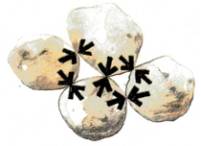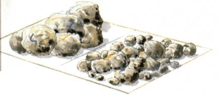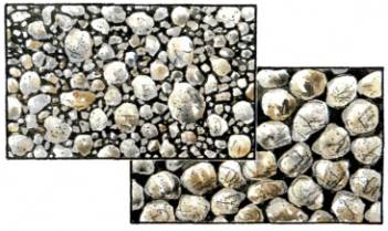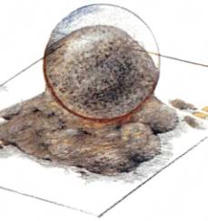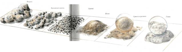 В хорошо подобранном гранулометрическом составе грунтов пустоты между крупными частицами заполнены более мелкими частицами. Они образуют более прочную насыпь, чем однородные по гранулометрическому составу грунты, в которых размер частиц более или менее одинаков (внизу). ГРАНУЛОМЕТРИЧЕСКИЙ СОСТАВ Определение гранулометрического состава отобранного образца выполняется с помощью ситового испытания, в котором высушенный образец пропускается через некоторое количество стандартных сит, различающихся размером ячеек. (Смотри иллюстрацию на предыдущем развороте) Количество остающегося на каждом сите материала подсчитывается в процентном отношении к общей массе образца. Цифры выстраиваются в график, результирующая кривая показывает градацию материала. Этот метод подходит для материалов, размер частиц которых не менее, чем у песка, а гидрометрические испытания проводятся для зерен меньшего размера, т.е. для пыли и глины. В хорошо отсортированном материале, представленном кривой, показывающей весь спектр размеров частиц, пустоты между более крупными частицам заполнены меньшими частицами. Это имеет значение для плотности материала. Кривая, показывающая частицы более или менее одного размера, соответствует одноразмерному материалу, в котором отсутствуют мелкие частицы для заполнения пустот. Следовательно, высокая плотность труднее достигается у одноразмерного материала, чем у разноразмерного.