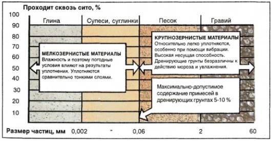 Вибрация приводит частицы в движение и постепенно преодолевает внутреннее трение. Это позволяет частицам перегруппироваться в более плотное состояние. Вследствие наличия связующих сил между частицами большинства грунтов вибрационное воздействие должно сочетаться с силовыми нагрузками определенной величины для преодоления сцепления. На песке и гравии, которые имеют низкую относительную связность, эффективны сравнительно небольшие нагрузки. Это значит, что с успехом могут быть использованы легкие катки и виброплиты.